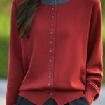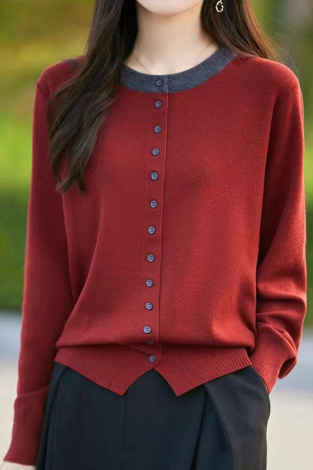 Cardigan,crew neck long-sleeve loose fit,front center with openable buttons,buttons and collar form color-block design with the body |