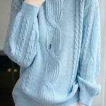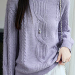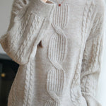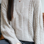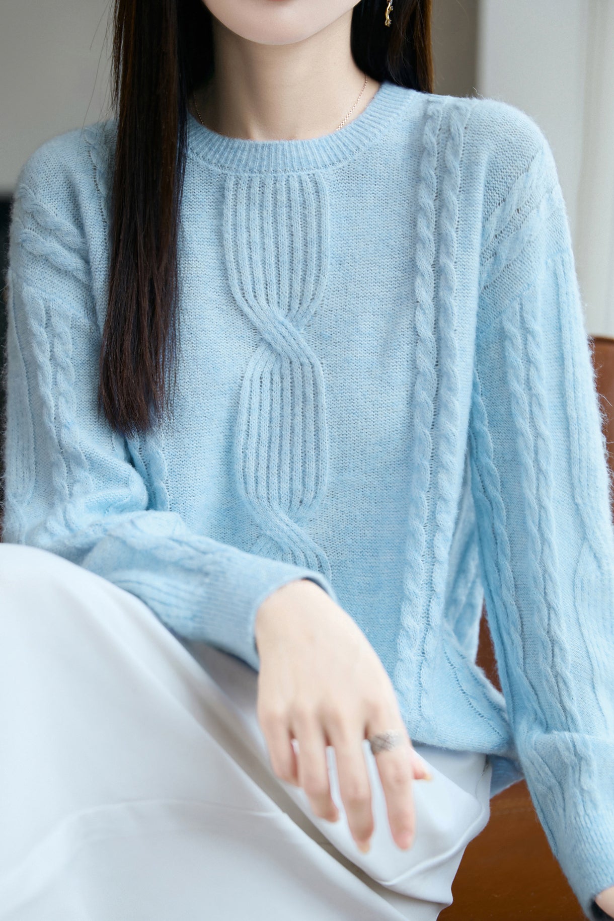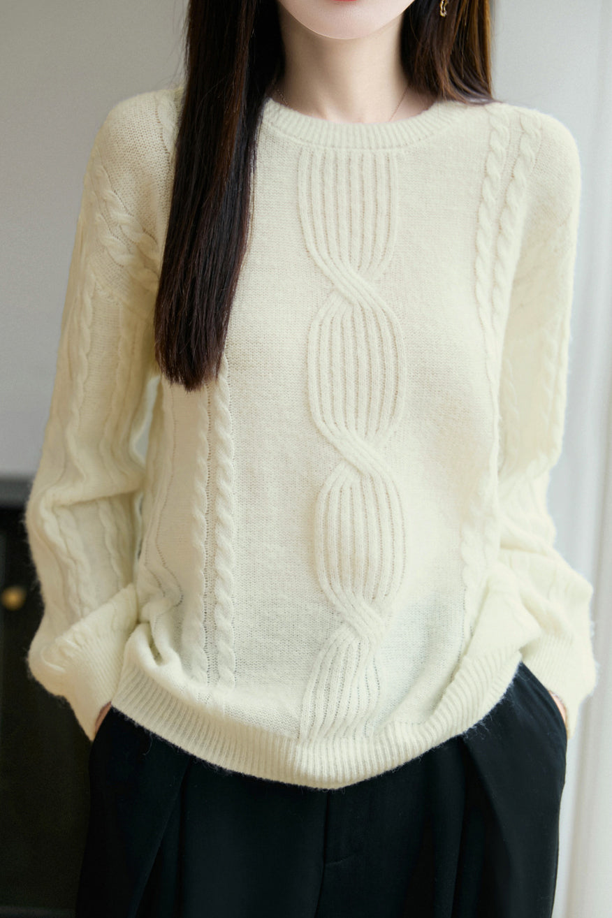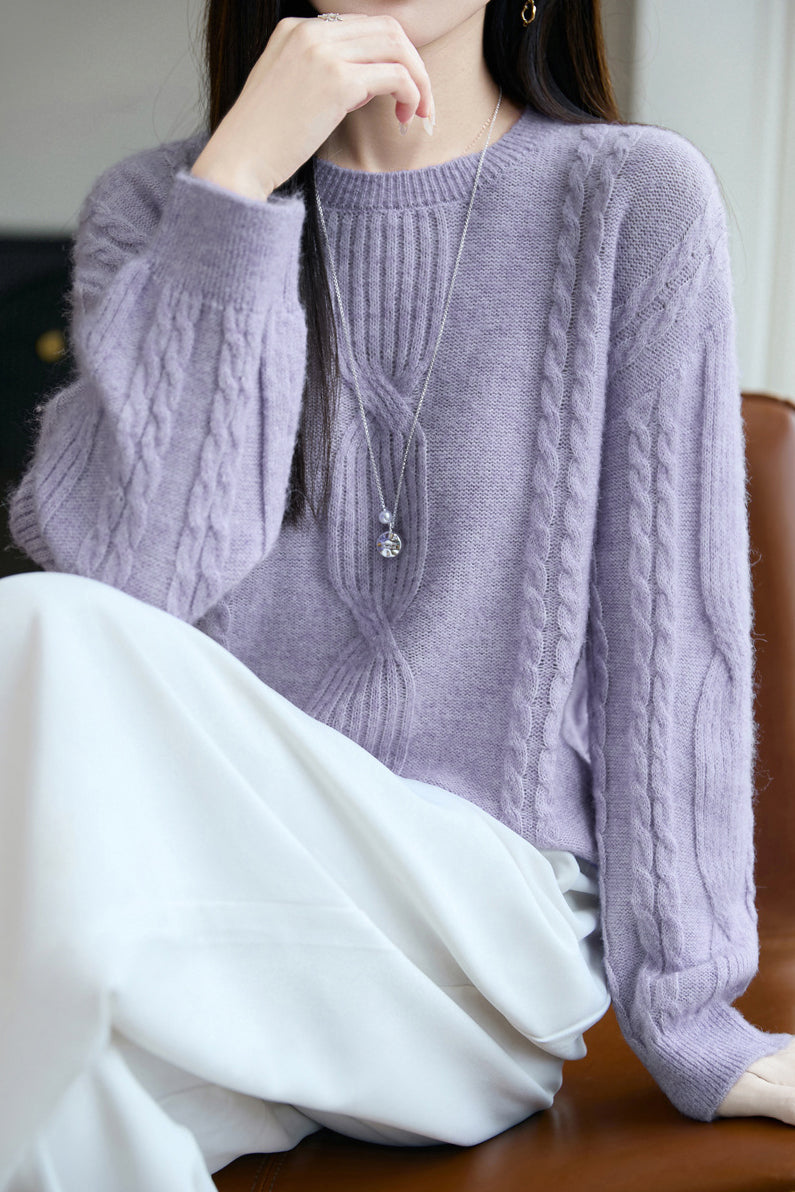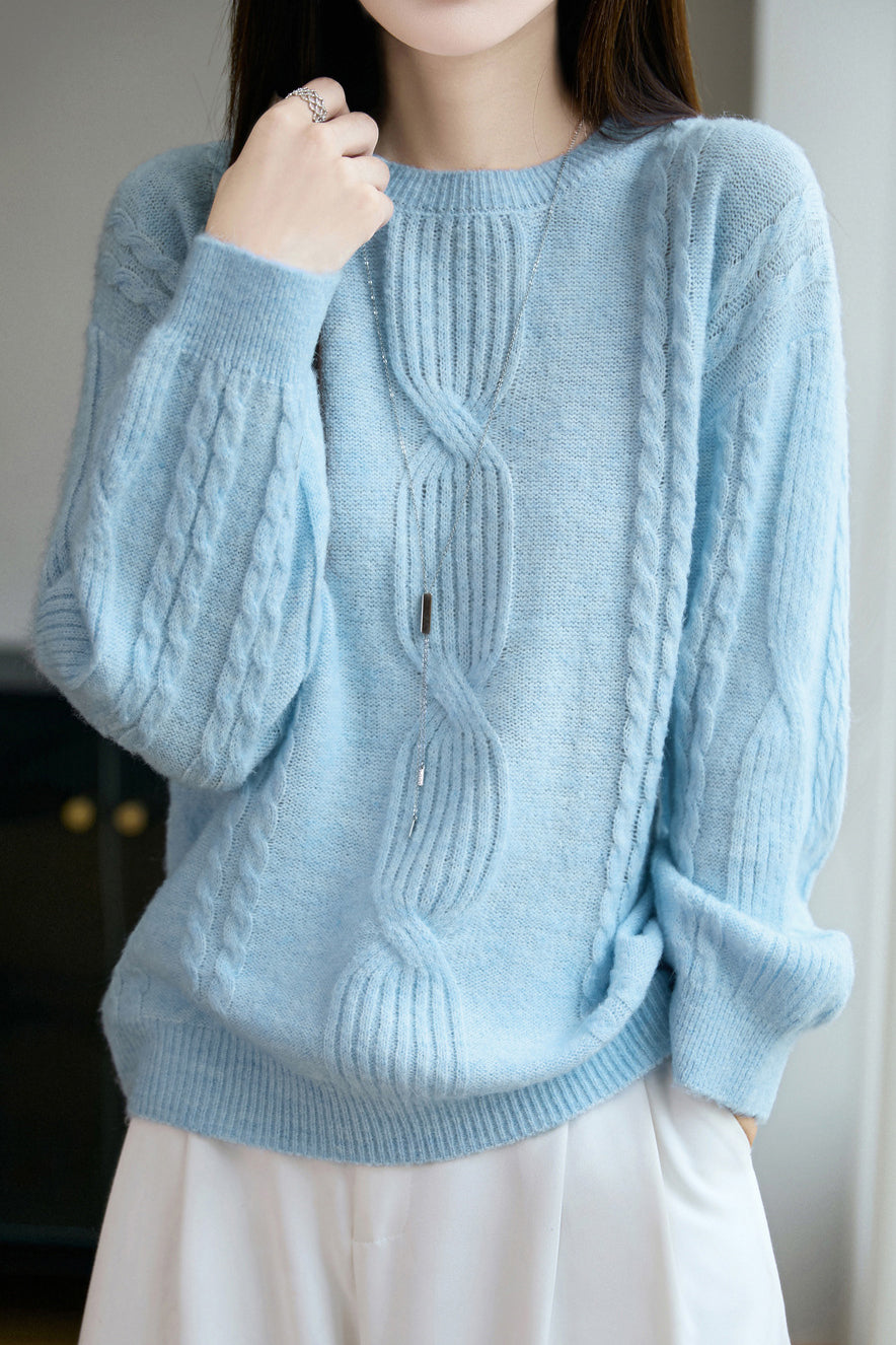 Casual Versatile Solid-Color Crew Neck Pullover Cable-Knit Sweater