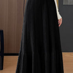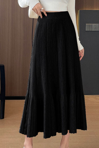 Casual Versatile Solid-Color A-Line Knitted Pleated Midi Skirt