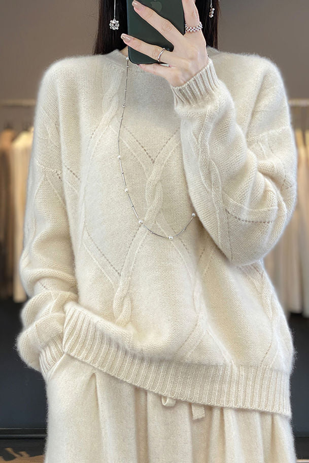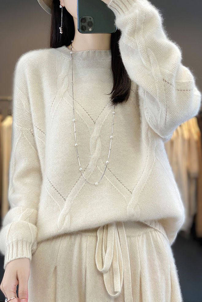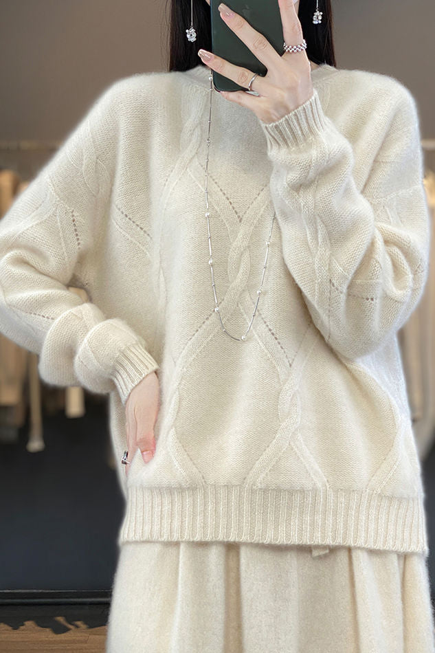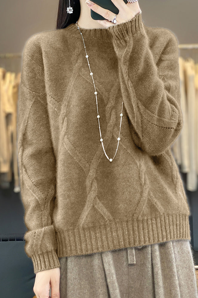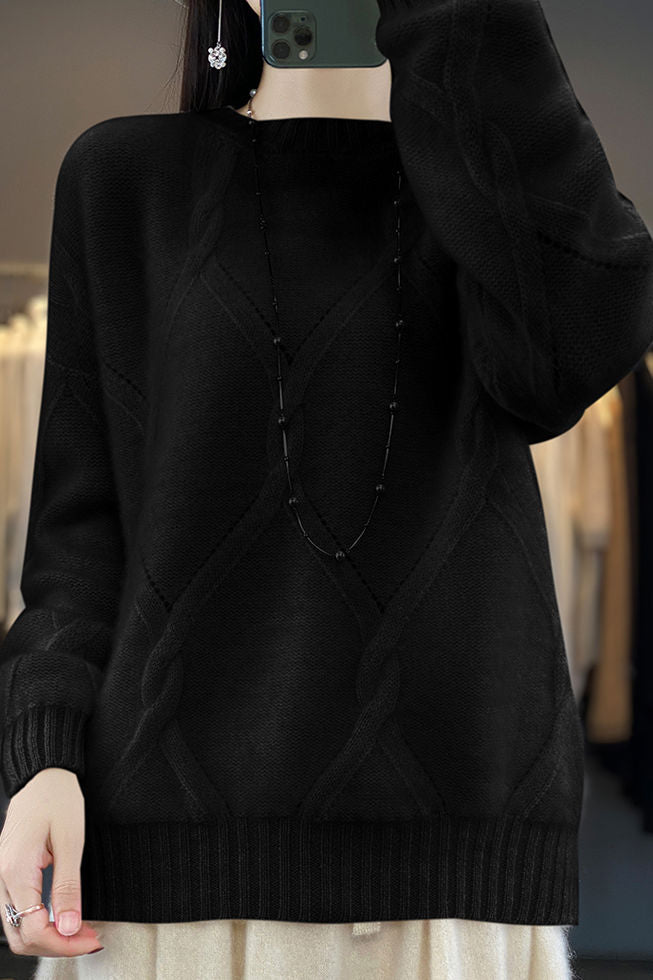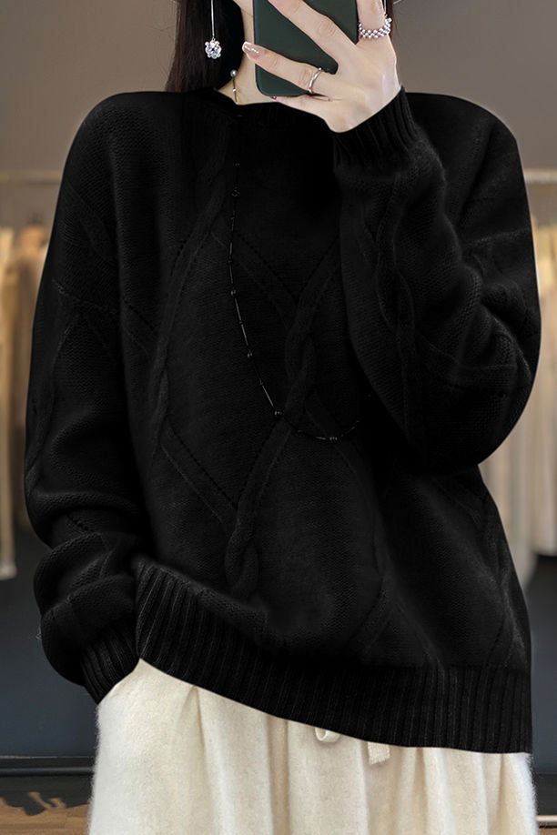 Casual Crew Neck Loose Cable-Knit Top