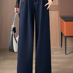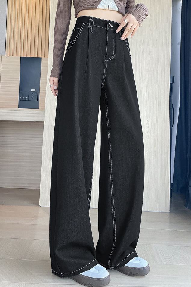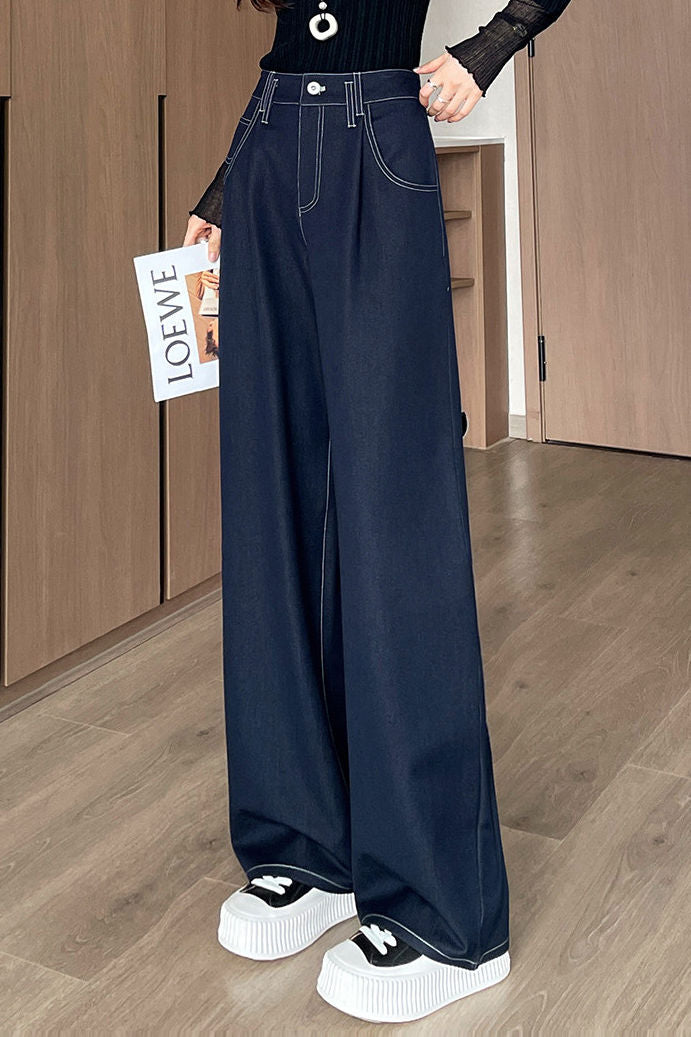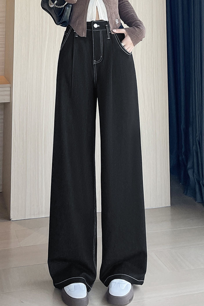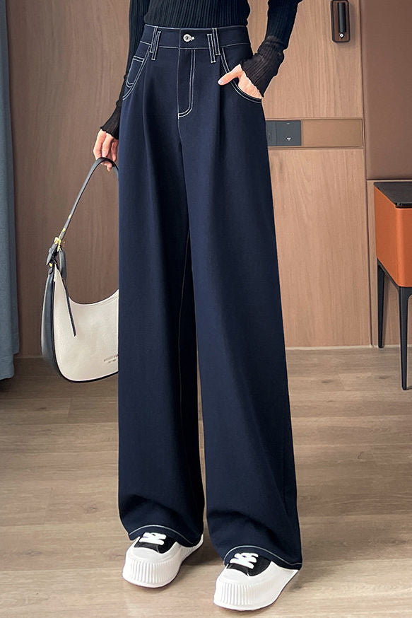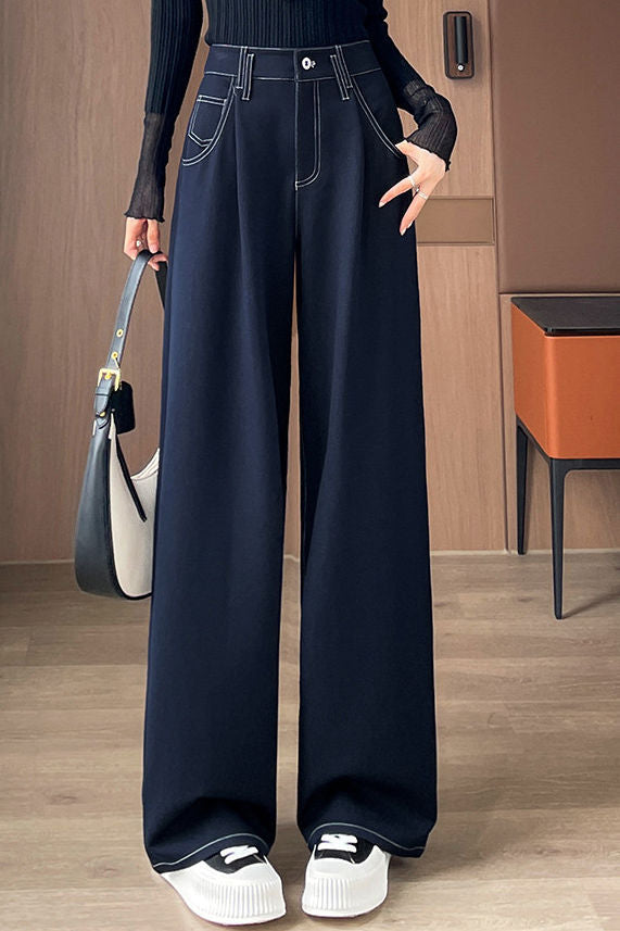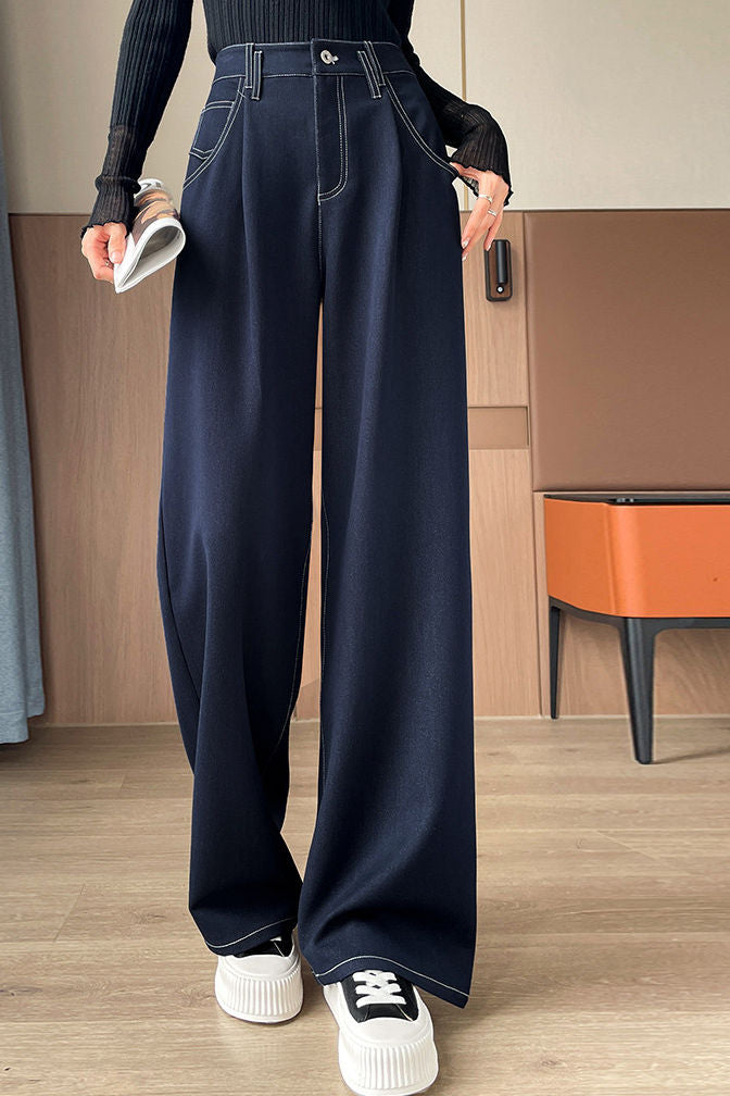 Pants, high-waist design, side with topstitch decorations for neatness, loose and drapey fit, structured and high-quality fabric |
