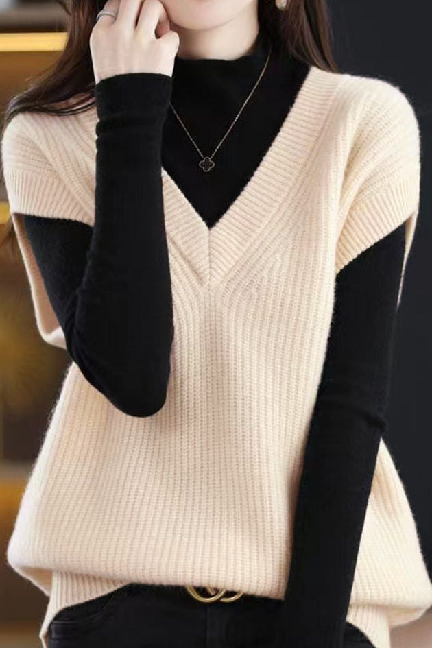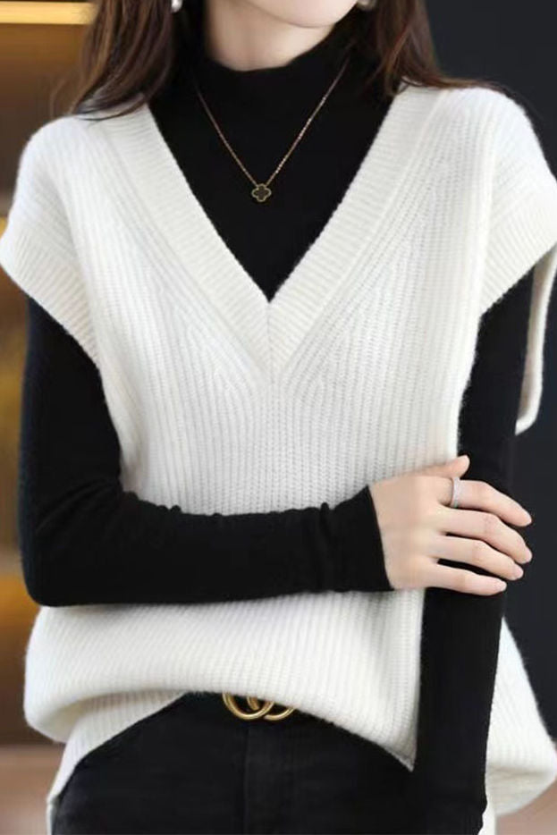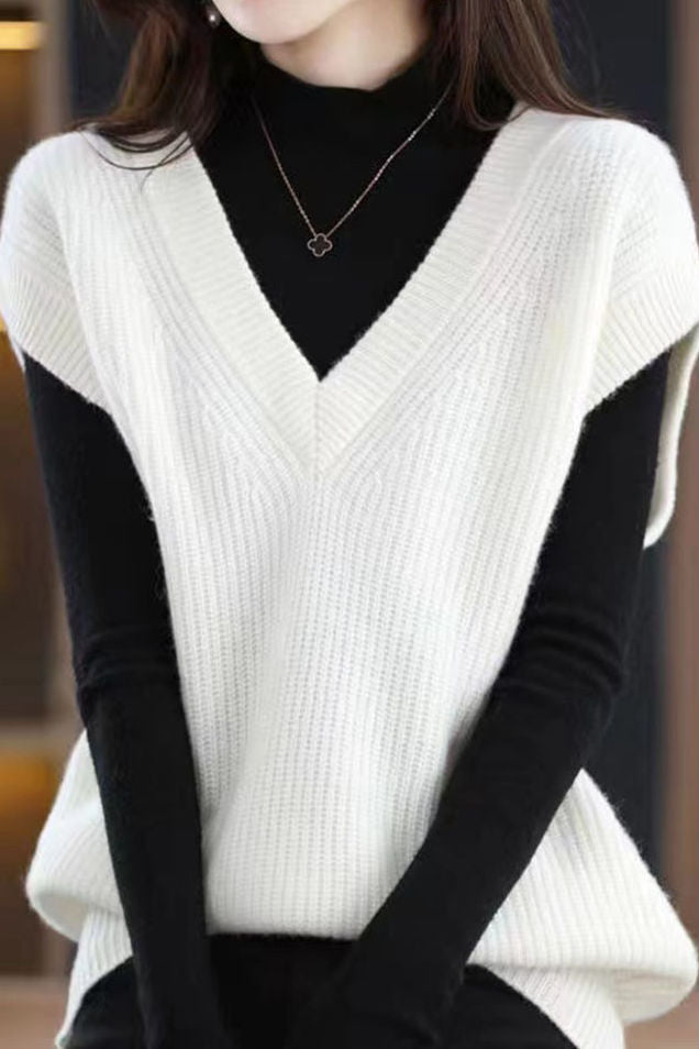 Casual Versatile Solid-Color V-Neck Knitted Vest