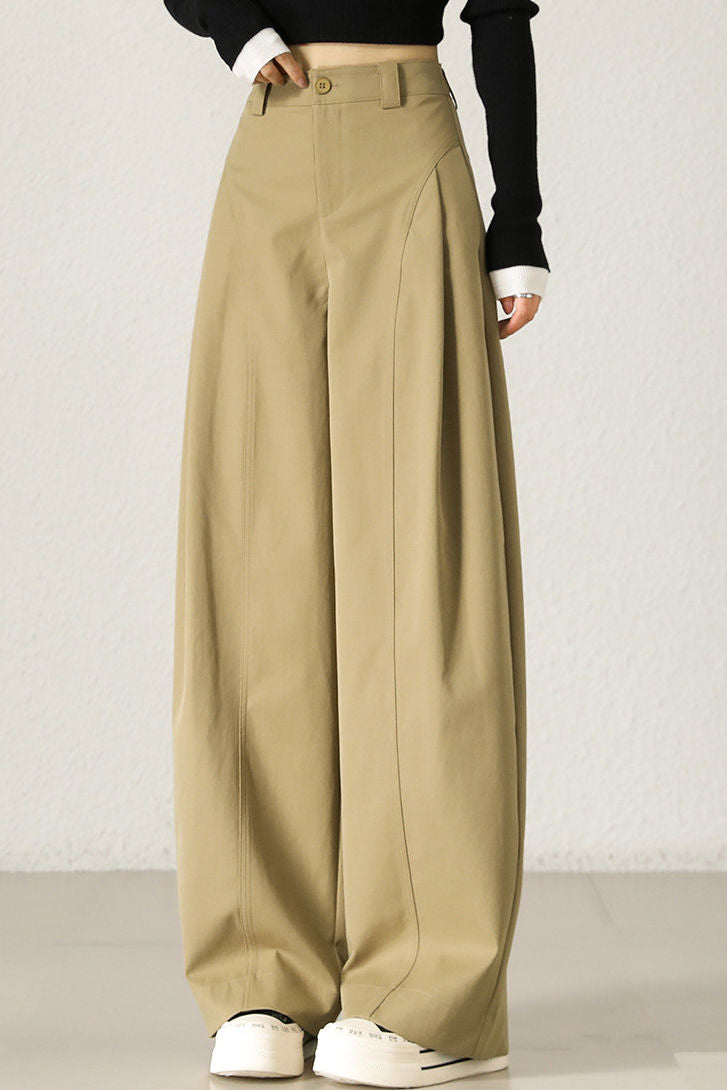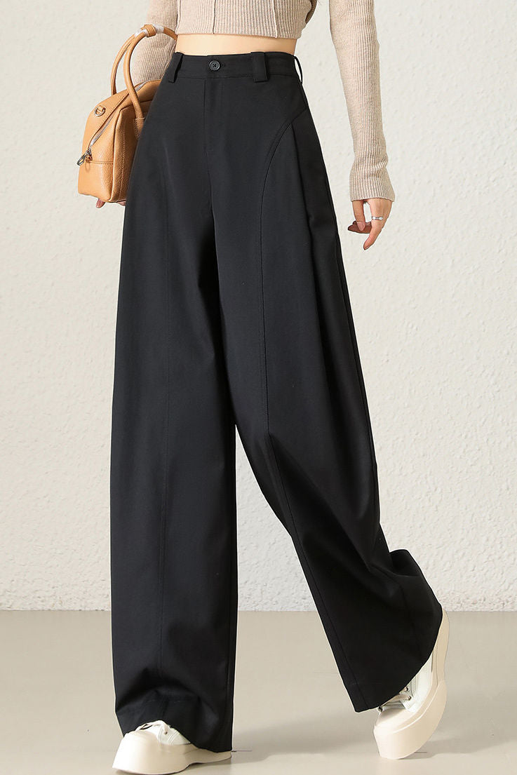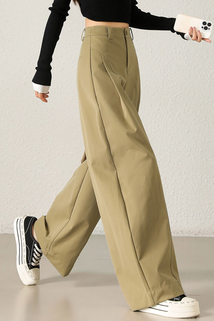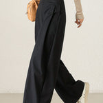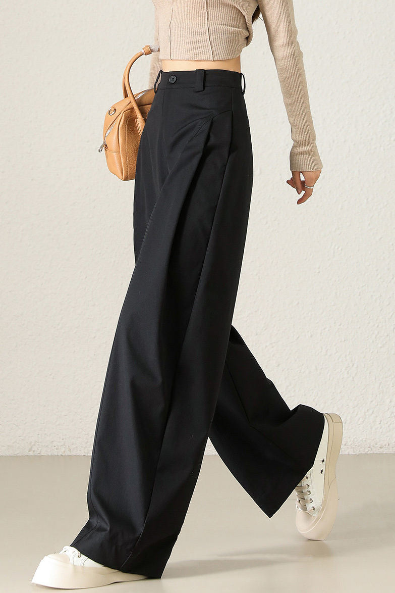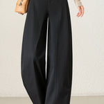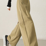 Casual Versatile Solid-Color Paneled Pleated Wide-Leg Pants