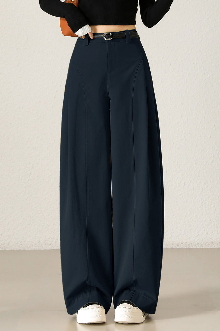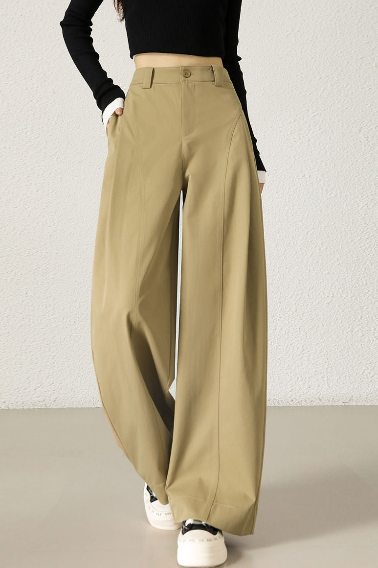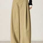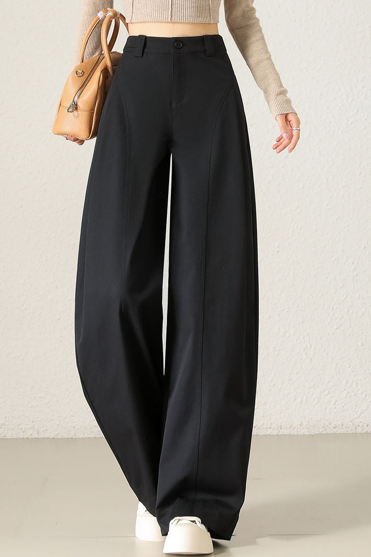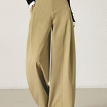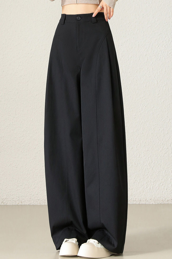 Casual Versatile Solid-Color Paneled Pleated Wide-Leg Pants