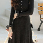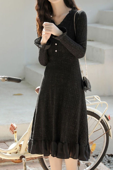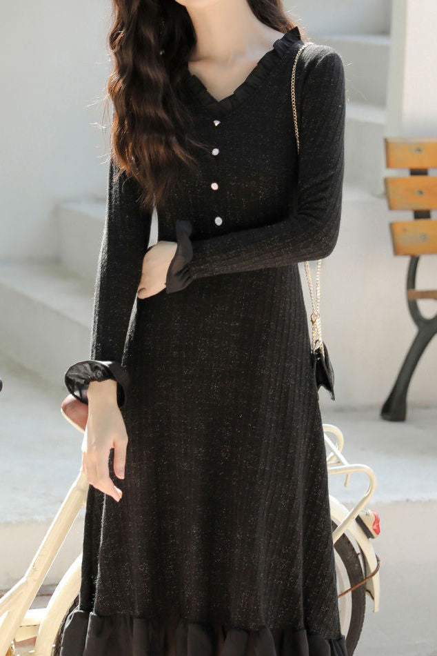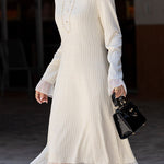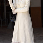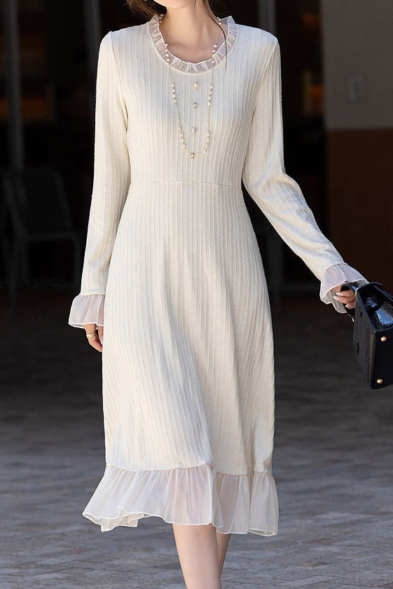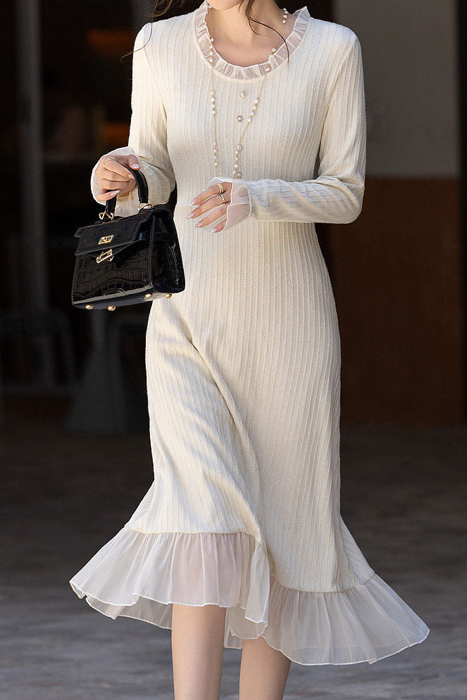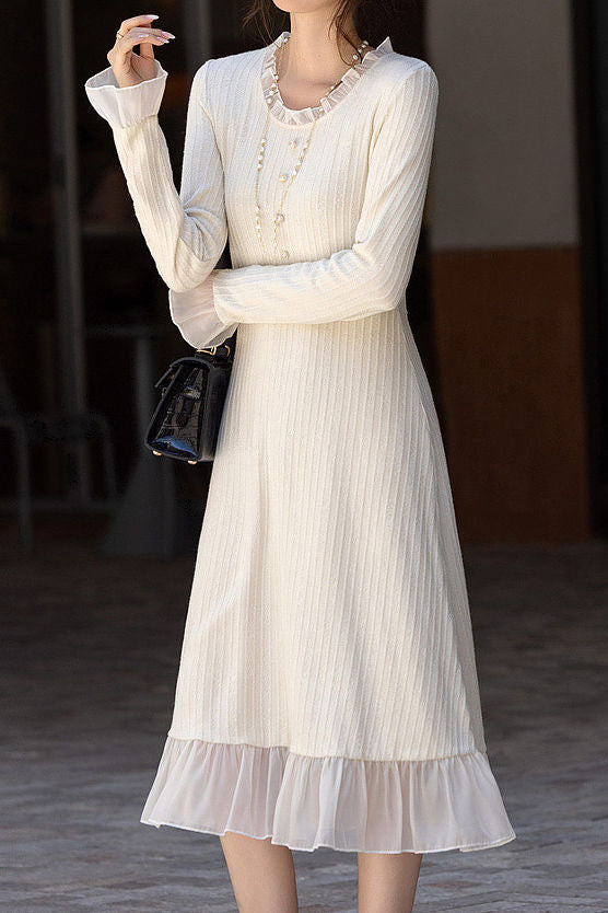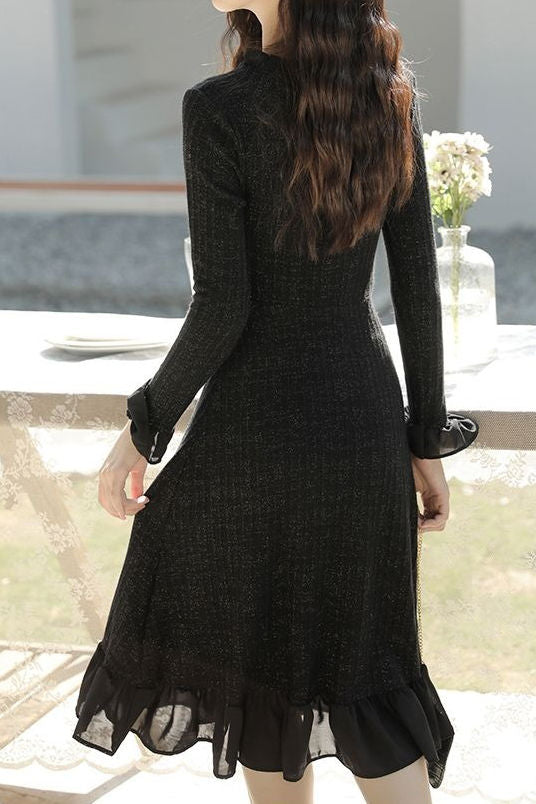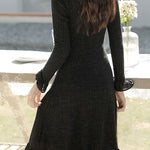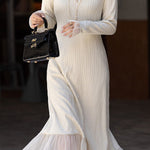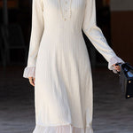 Elegant Temperament Solid-Color Lace Trim Knitted Dress