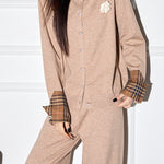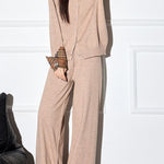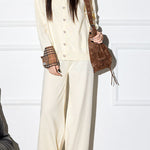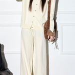 Knitted cardigan two-piece set, including cardigan and wide-leg pants, cardigan with single-breasted button closure, cuffs with plaid decorations for layering, soft and skin-friendly fabric |