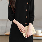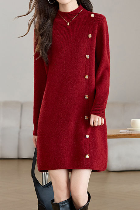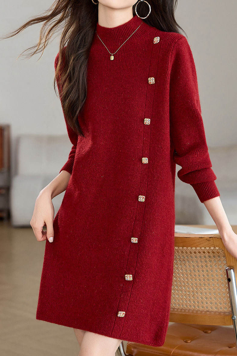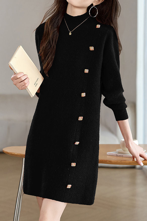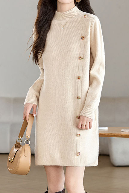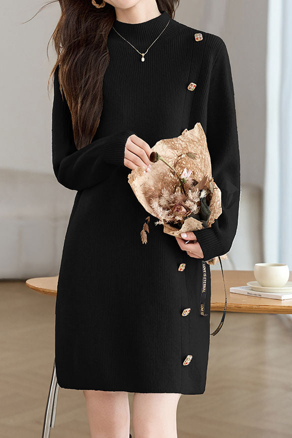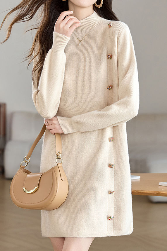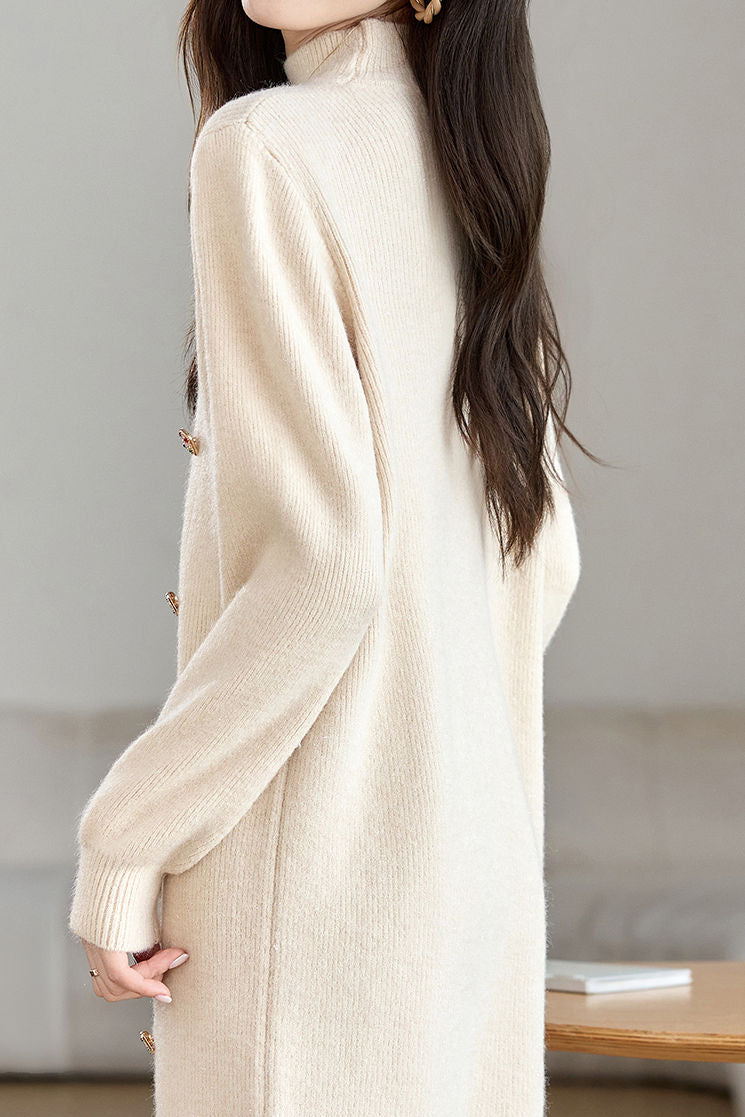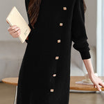 Casual Elegant Half-High Neck Long-Sleeve Mid-Length Knitted Dress
