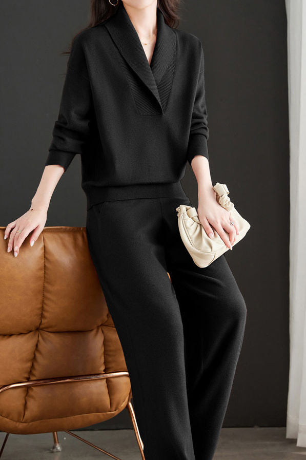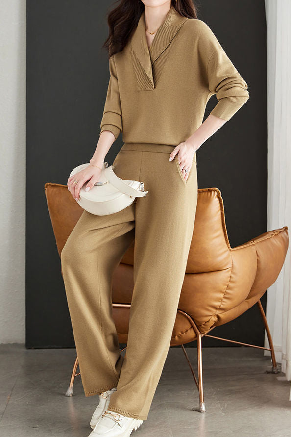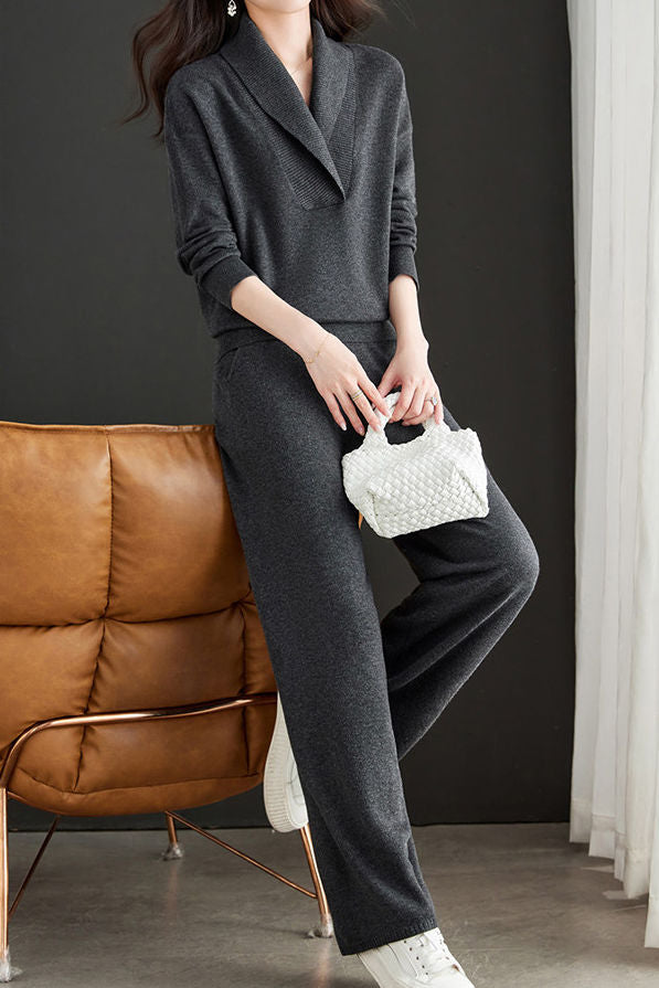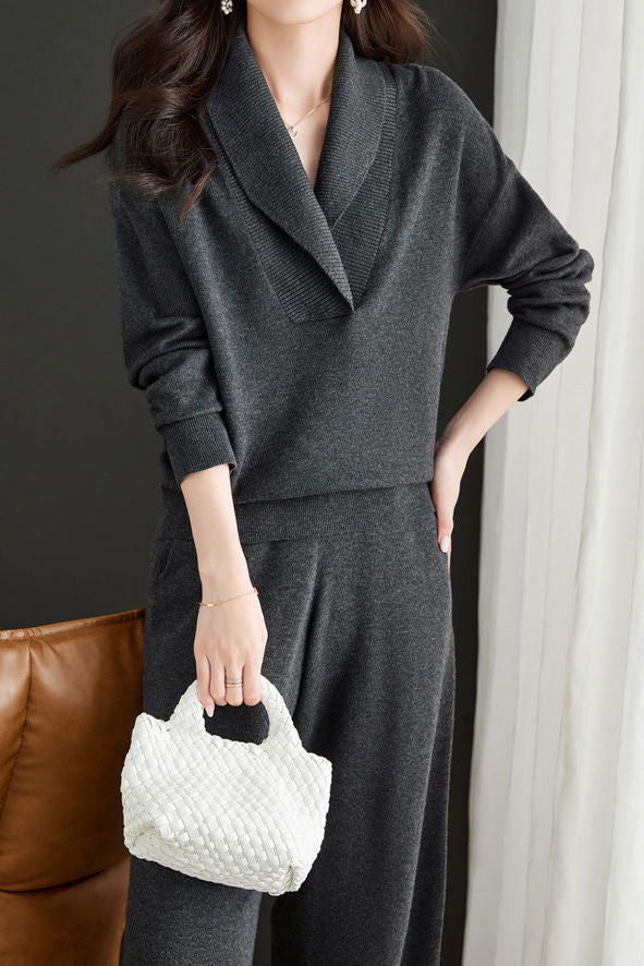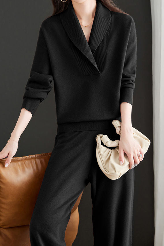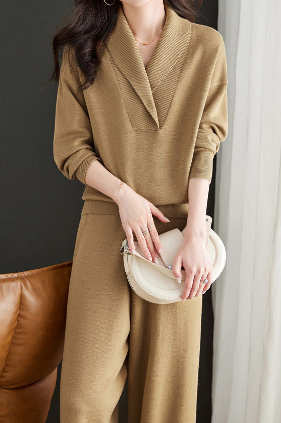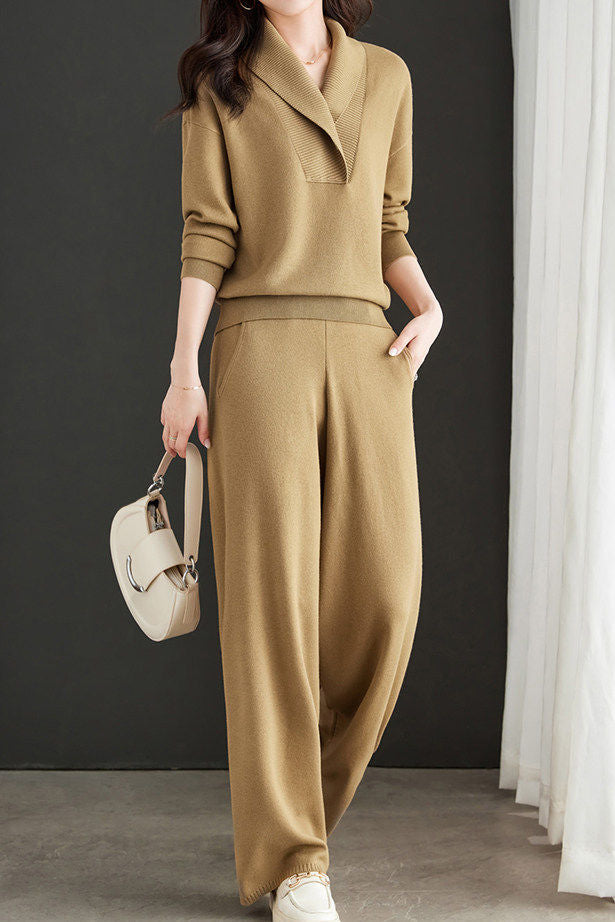 Casual Lapel Knitted Two-Piece Set