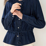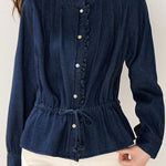 Casual Ruffled Pleated Waist Denim Shirt
